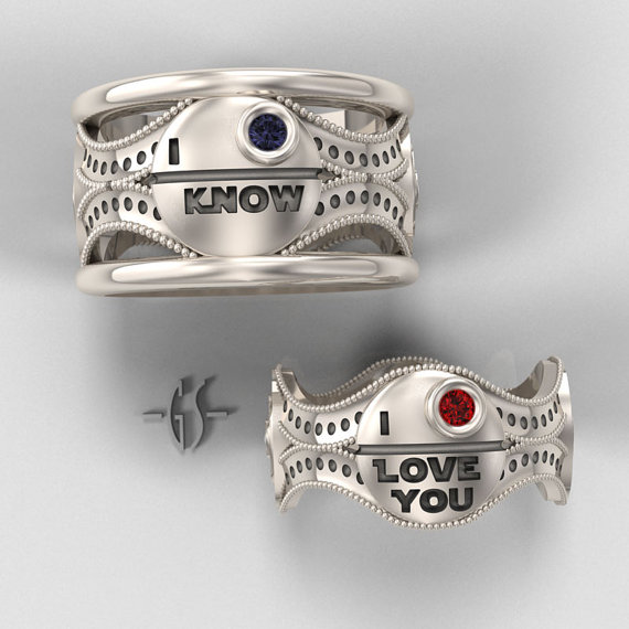 - His and Hers Star Wars Ring Set – Sterling Silver with Rubies and Sapphire