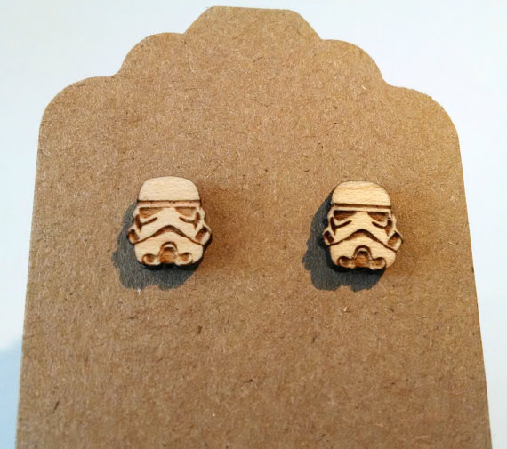 - StormTrooper on Maple Wood Laser Engraved and Cut Titanium Post Earring