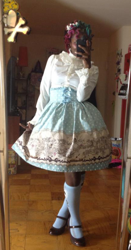 Imani: My name is Imani K. Brown. I’m an artist- tattoo artist & illustrator from the DC area. I am also a Lolita (as often as time permits, these days LOL) and specifically lean towards a (bitter)sweet style in the fashion, most times. In Lolita, I am an admin for one of DMV’s local comms, Metro Lolitas, which is specific to DC and the Metro public transportation lines.