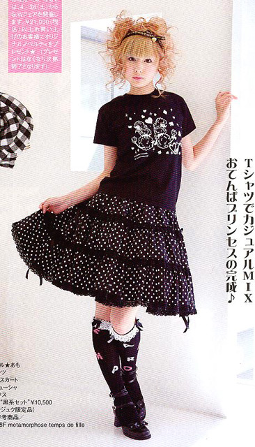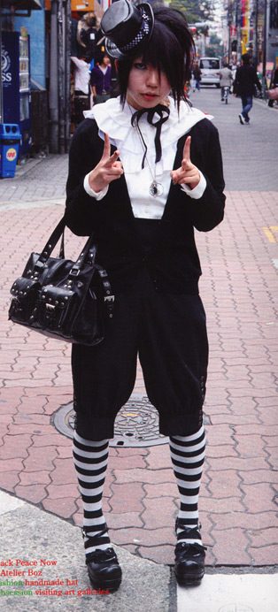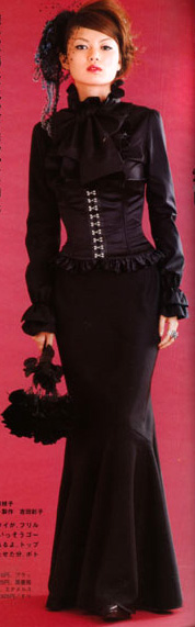 This is a more mature style and doesn’t include cutesy motifs like bows, prints, etc. Skirts are usually long and the style can include corsets, fitted jackets with tail coats and frilly shirts, top hats and veils. This style can easily be worn by both men and women.