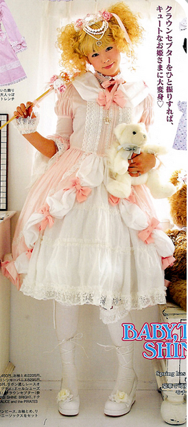 This style is the most child-like and uses a lot of bows, ruffles, light colors. Light or natural makeup looks best with this style and big teased out pigtails and curls are commonly worn by Sweet Lolitas.