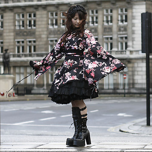 This is a Kimono-esque style that involves long ‘sode’ or sleeves and ‘obi’ or sashes from Kimono/yukata outfits. Of course to make it lolita these elements are fused with bell-shaped skirts. Â Qi Lolita is similar but uses Chinese clothing and accessories.