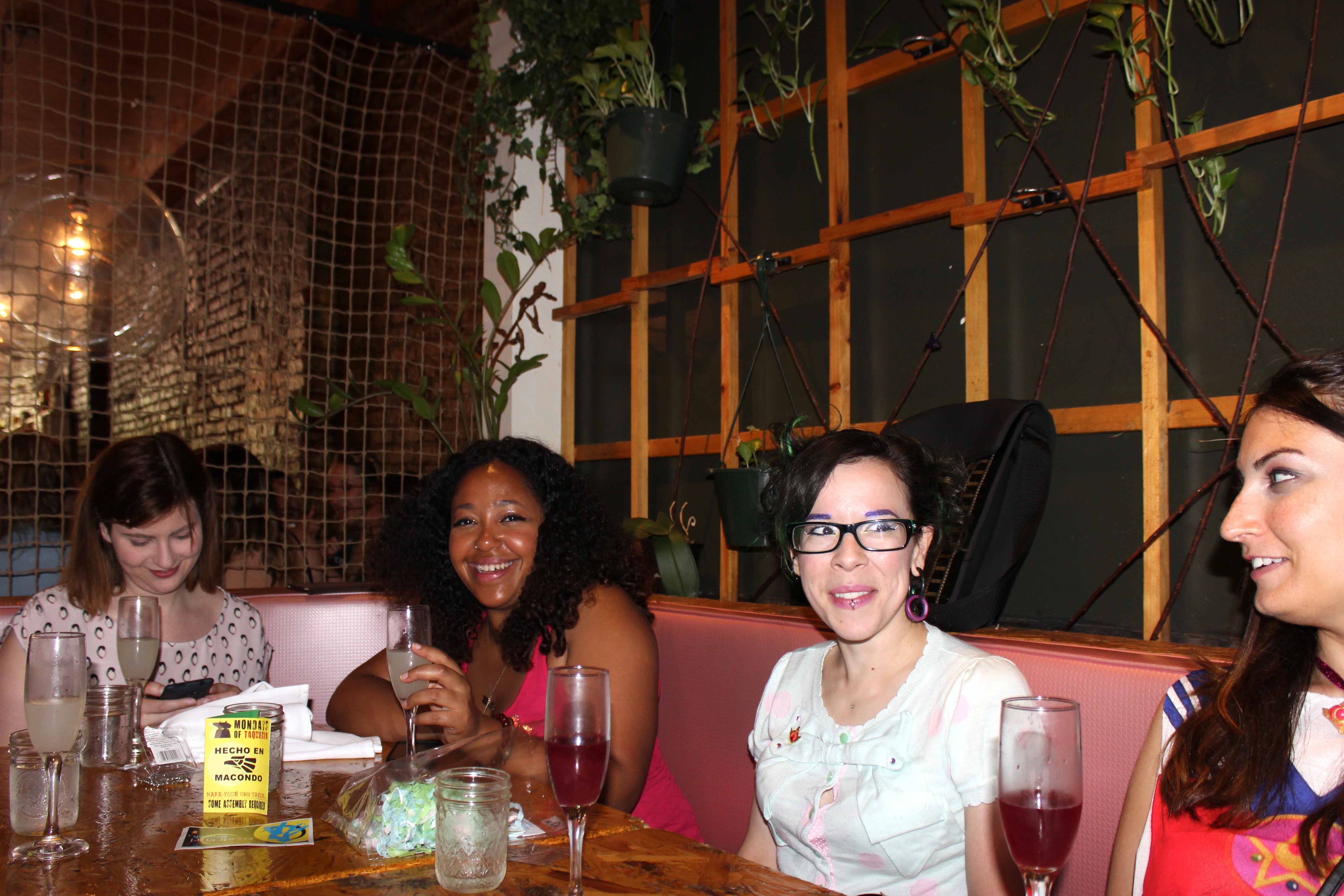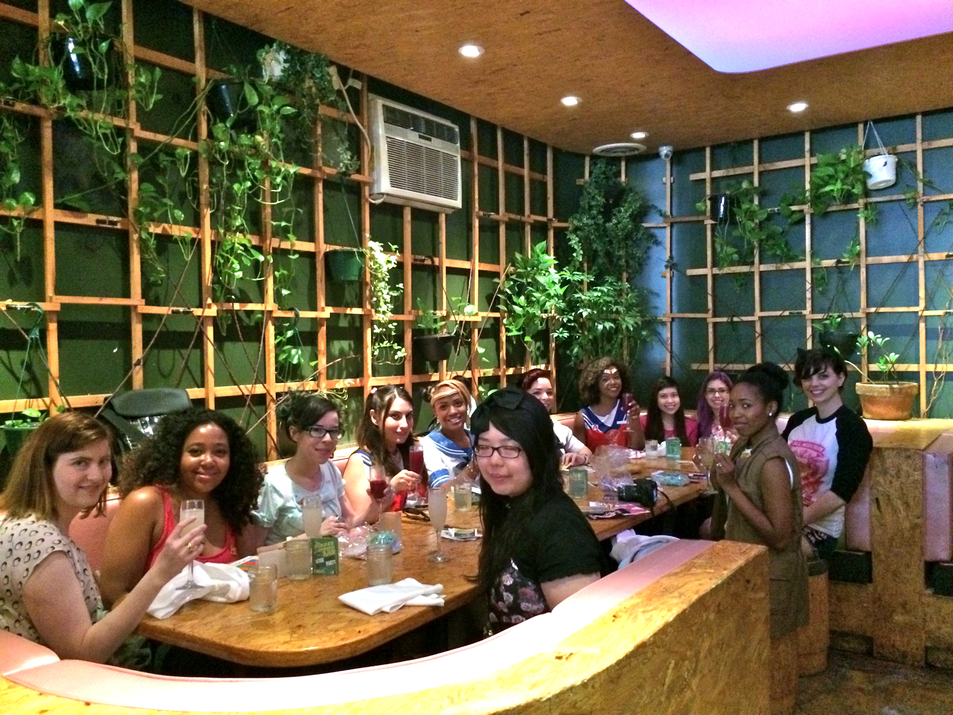 It was a little under a year ago that we held a geek girl brunch at Macondo. It was only our second brunch. It was 4 people. Fast forward to this past Sunday when our little group had almost quadrupled in size to 14. (Not bad, eh?) Returning to Macondo with our ever growing troupe of Magical Girls, we filled the venue (half of their green room) with laughter, a lot of pink, and a wealth of new wonderful memories.