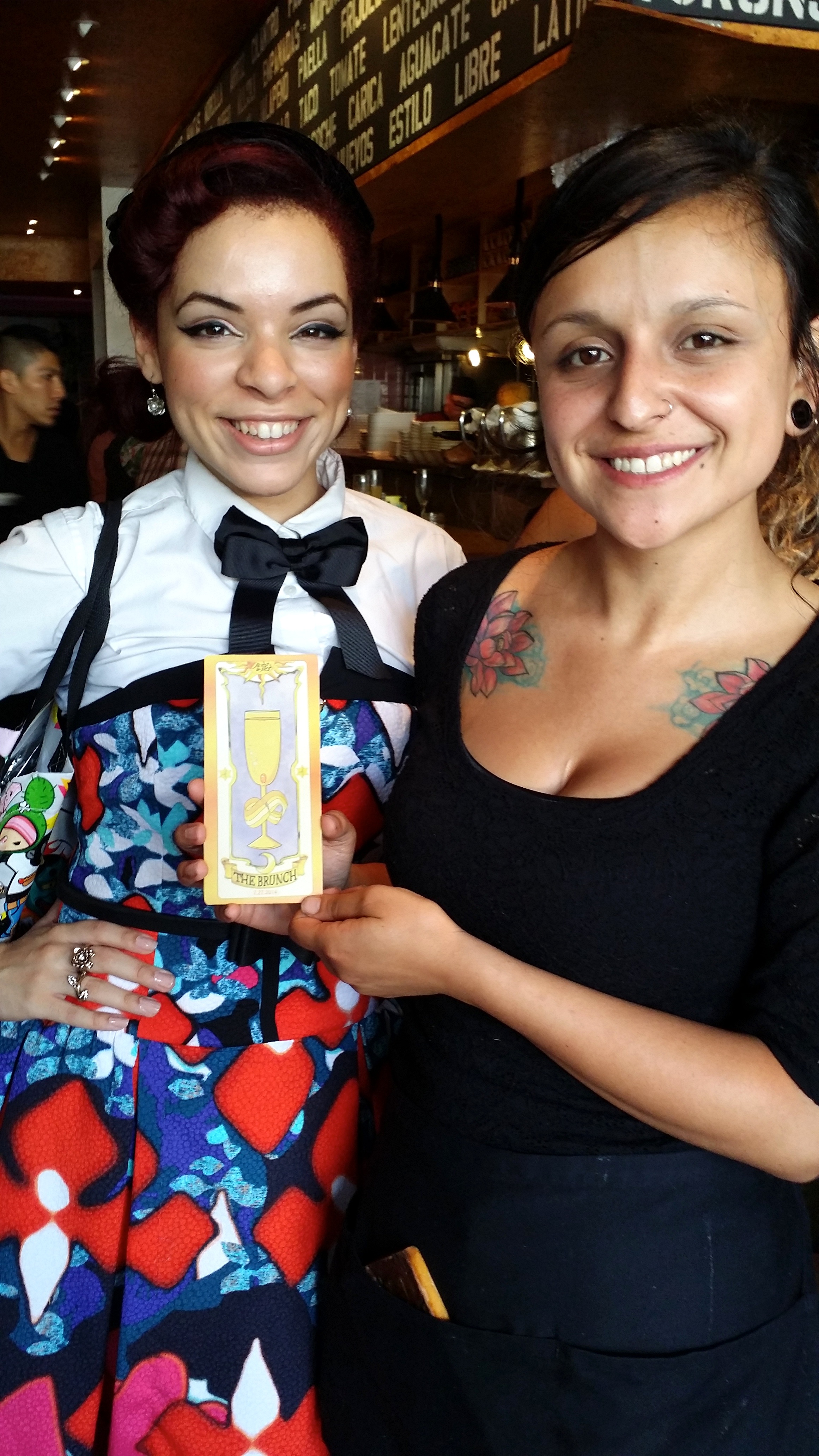 But the food and drinks weren’t the only amazing things about Macondo. The Macondo staff helped make our dining experience truly memorable. After brunch the hostesses asked for GGB’s information because they are geek girls as well and saw how much fun we were having. But the icing on the cake (or maybe the syrup on the pancake) was our Magical Girl server, Andrea. As fate would have it, our server Andrea was a total Magical Girl with a diehard obsession with Cardcaptor Sakura. As soon as Yissel pulled out her Clow Cards she jumped back and excitedly called them out! We all applauded her reaction. She was the best server. She was perfect. We explained what Geek Girl Brunch was and she got–dare I say– emotional, which made some of us emotional. Andrea was the one keeping the mimosas flowing, and yet SHE was thanking US at the end of brunch for what we were doing. Needless to say, on top of the tip we gave her some choice swag. My guess is she’ll keep that custom brunch card forever. She is why we do this.