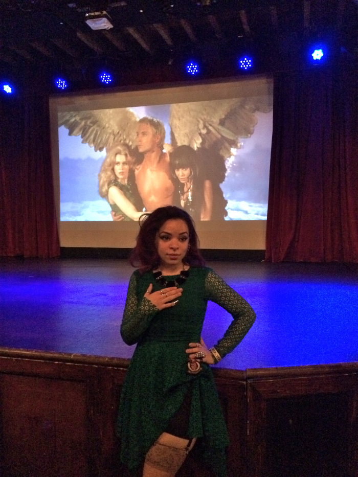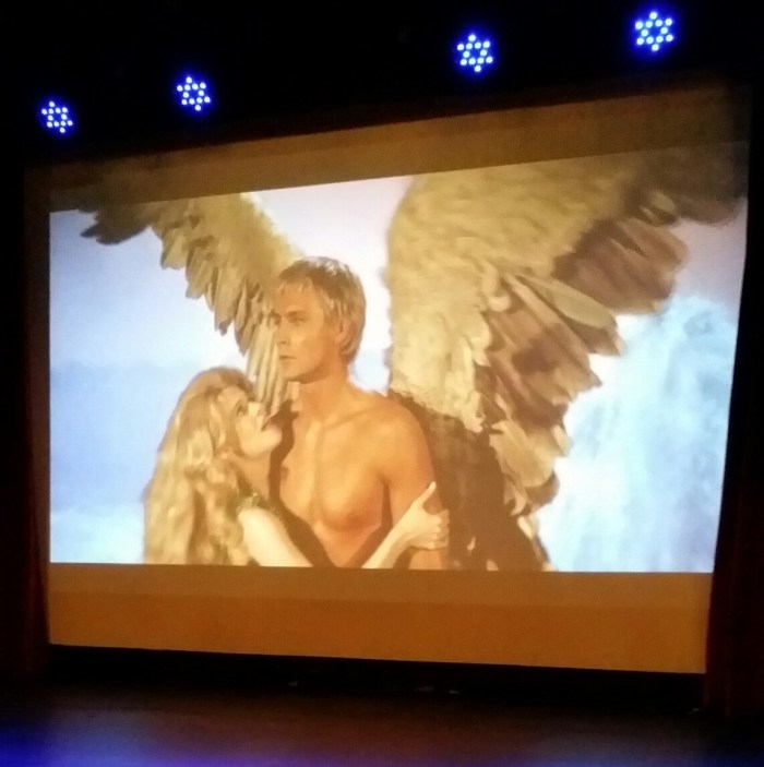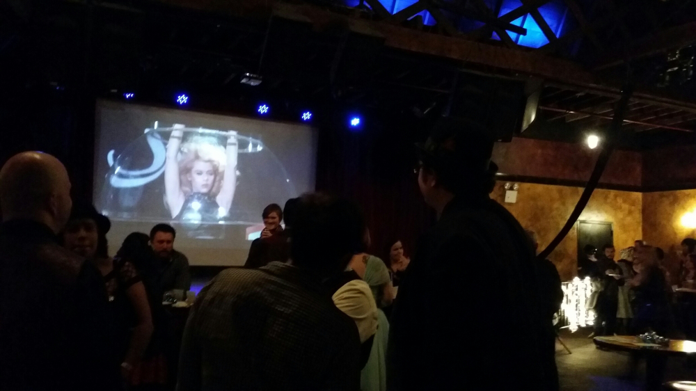 We set the mood during the cocktail hour by projecting Barbarella on stage, as the always well-dressed Wasabassco crowd nibbled and noshed waiting for the galactic-sized show to begin.