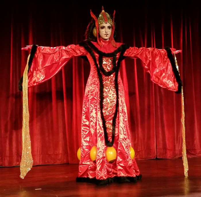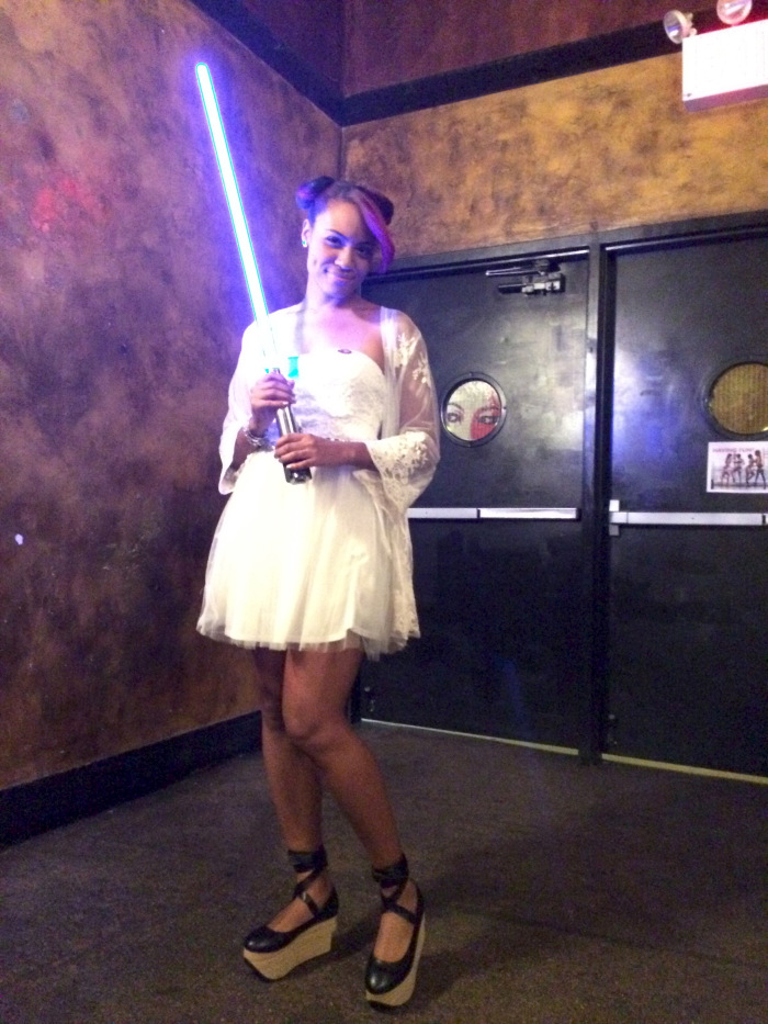 Once cocktail brunch hour was over we all eagerly gathered to see the opening act, a very Geek Girl Brunch style number by Mags! She wowed us all with her haunting and powerful Amidala! Dancing to Bjork has never made more sense. Mags is clearly a brilliant costumer (her costume lit up!), and for those of us who wanted to take home some of her work we got to run back to the Booty and the Geek table to snag some pieces.