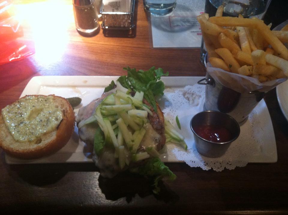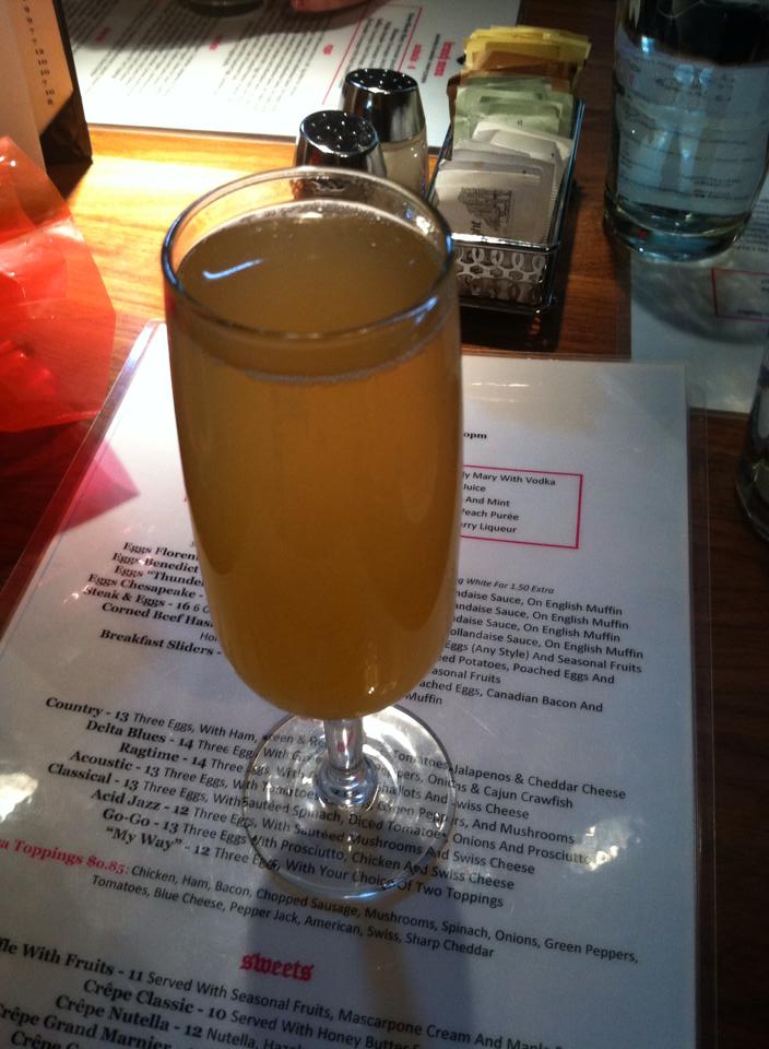 Don’t assume we skipped out on burgers though! The popular choice was called the “Learning to Fly” burger which was a delicious turkey burger topped with chopped apples, swiss cheese, avocado, and a remoulade. Of course, we all had some sort of drink to accompany our meals. The popular choice of the day was the Thunder Burger’s fantastic bellini, but there was plenty of mojitos and the occasional beer around.