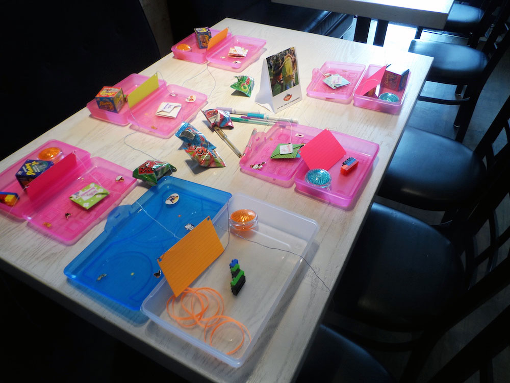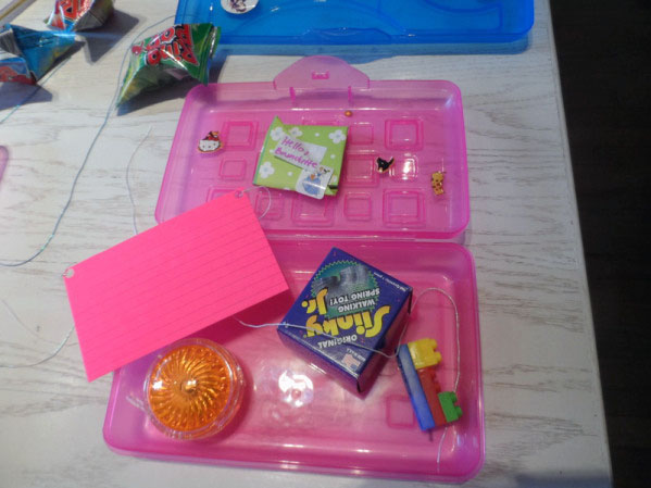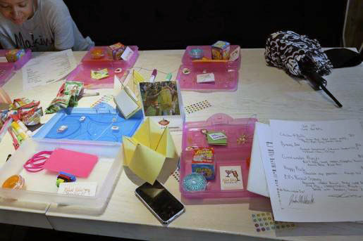 As you can see, our attendees (24 in all) tore apart the pencil boxes stuffed with little toys and knickknacks that called back to our playground days.