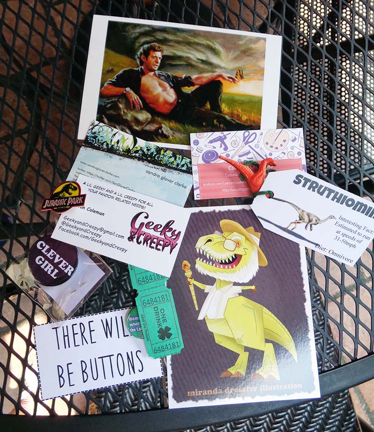 The raffle was an embarrassment of riches. Every attendee received a piece of swag. There was a dinosaur at each place seating, that dinosaur determined your prize. Huge thank you to Cadebee Creations, There Will Be Buttons, The National Anthem, 518 Shipp, Miranda Dressler Illustrations, MelleNora, Snitches Get Stitched, Sweet and Lovely, Heldina Line, Armory Fab, Mike Spiers Art Store and Art is Andra Shop.