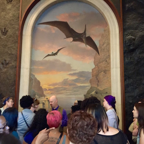With our bellies full, it was time to make our way to the American Museum of Natural History. We went through a private entrance and met Eric our tour guide. Eric is one righteous dude and he knows about dinosaurs. Eric took us around the dinosaur wing where we learned so much. It was a lovely tour and then we got down and did the dinosaur.