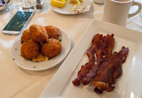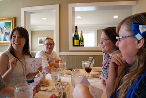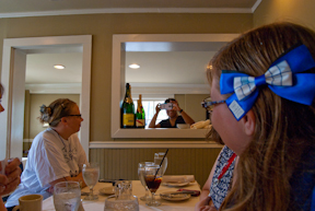 The location for our August brunch was The Old Vinings Inn, a small inn built in the 1880’s and a well-known Vinings landmark. It originally was used as a post office, but is currently used as a charming Southern restaurant. A few highlights from the menu include truffled mac n’ cheese lobster fritters, fried shrimp po’boy, shrimp and grits, and banana and hazelnut chocolate french toast. The food was delicious and more than filling. The staff was also very accommodating to our large party and even rearranged the private dining room so that we could have one large table.