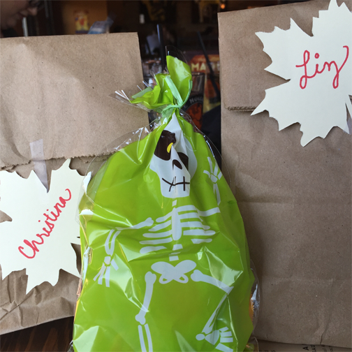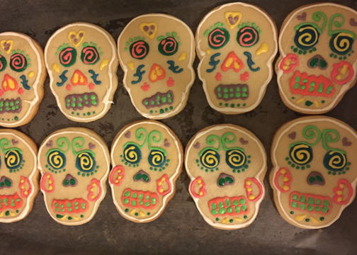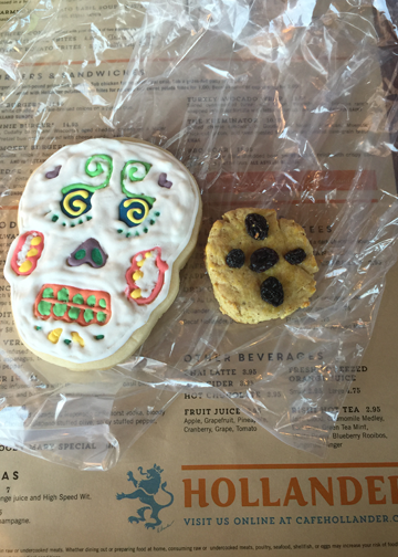 Our swag bags were full of tasty treats the represent Halloween (a bag of trick-or-treat candy generously donated by an officer’s son), Samhain (homemade soul cakes), and Dia de los Muertos (homemade calaveras cookies). They were the perfect desserts for our first brunch!