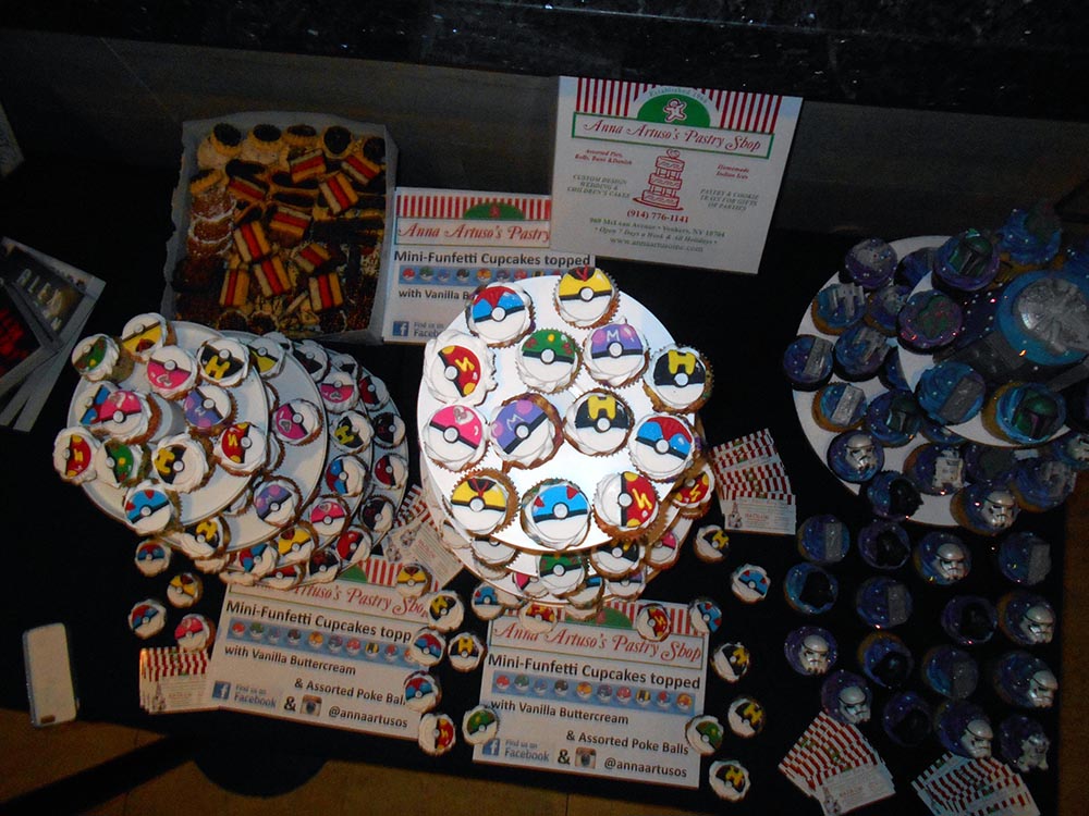 One of the highlights of our evening involved cupcakes. But not just regular cupcakes, they were made by one of our favorite geeky bakeries, Anna Artuso’s Bakery! They delivered towers upon towers of Pokeball and Star Wars Cupcakes. We were completely blown away at all of the different Pokeball cupcakes. Thankfully, there were plenty to go around so we didn’t have to just choose one. We had like, 12 each. How many did you have?!