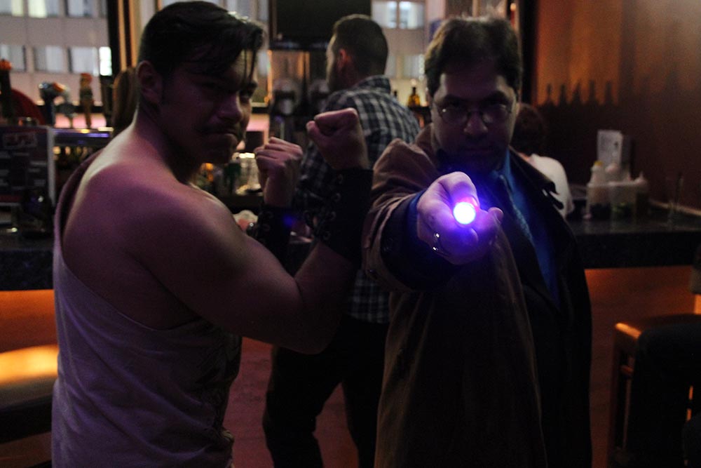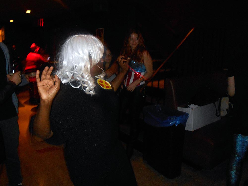 At one point during the night there was a light party involving hula hoops and even a dance circle (hula hoop rave, anyone? Is that a thing? Can we make it one?). None of which would have been possible without the musical stylings of DJ Millz. Located high above the main floor he and his assistant Elikai tirelessly inspired dance fever. Next year we plan to infuse even more Geek Girlness into FGNO and have a lady DJ and more geek-inspired tunes.