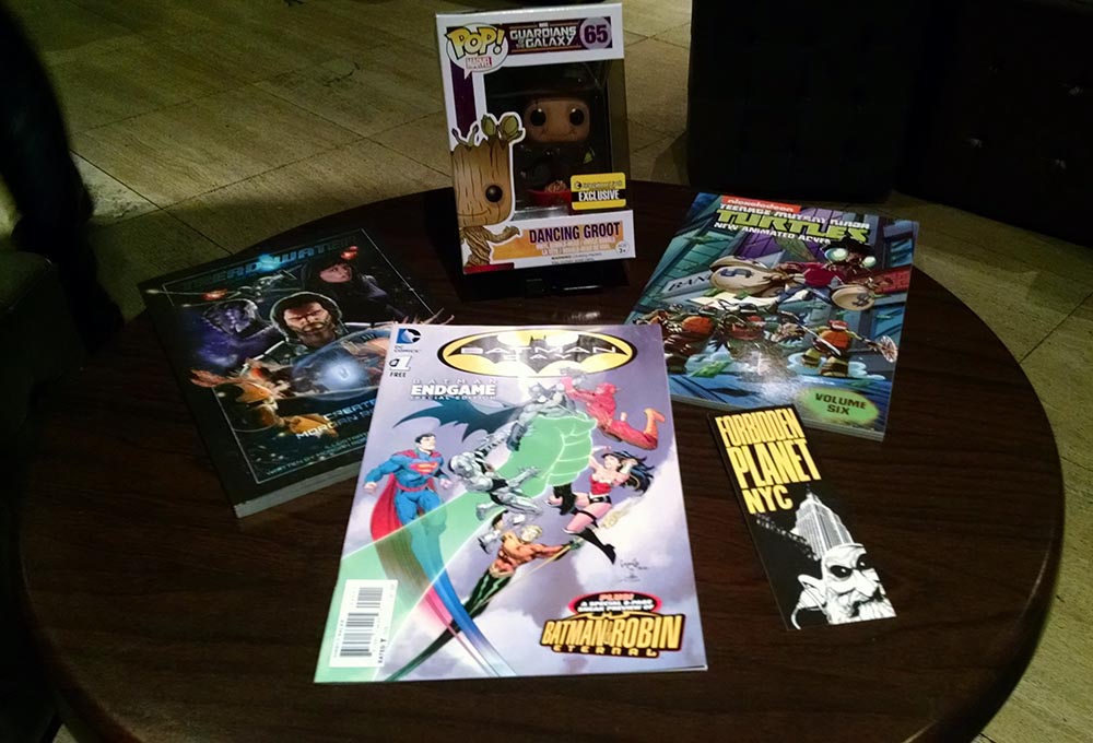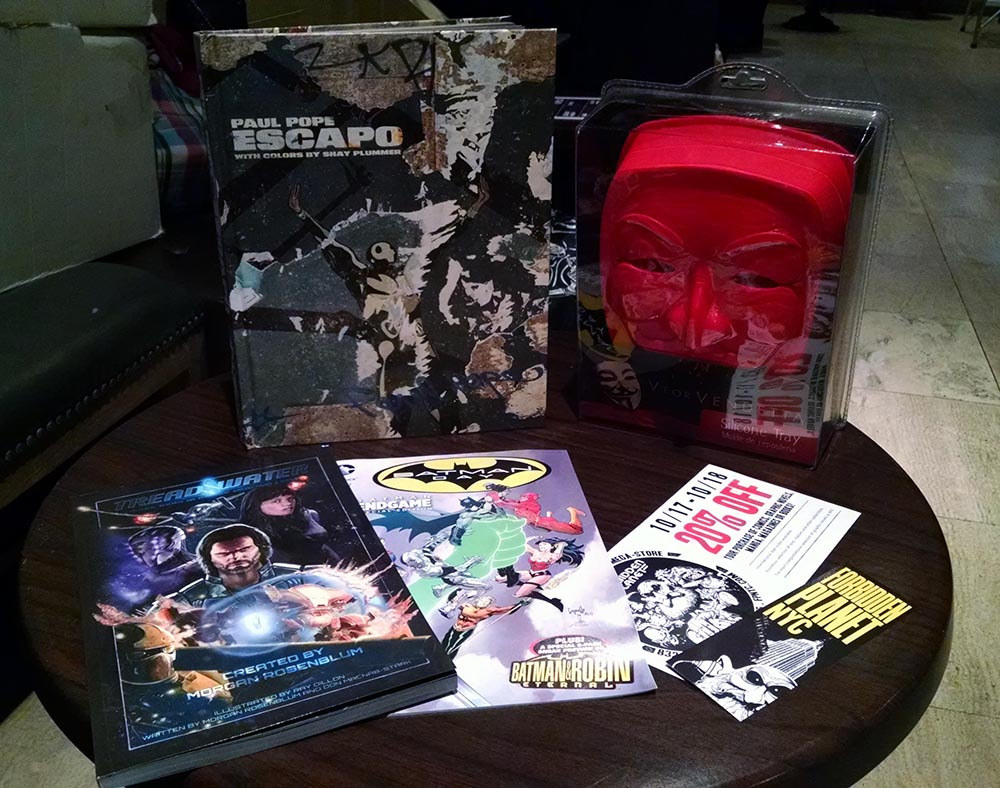 The first 50 guest were lucky enough to get the swag bag to rule all swag bags donated by our fantastic sponsors, Forbidden Planet! They were filled with adorable Groot Funko Pop Toys, floppy/TPB/HC comic books and V for Vendetta silicone trays. We were seriously blow away. Forbidden Planet now owns our hearts. If you’re in the NYC area, make Forbidden Planet your go-to for comics, geeky apparel, toys and more.