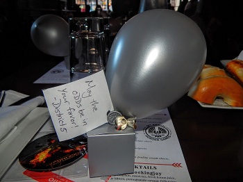 And after a successfully raiding President Snow’s private vault, we were able to find enough previously outlawed Mockingjay items for a raffle and swag for everyone. May the brunch be ever in your favor