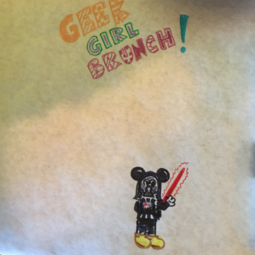 We also started a tradition of covering the table in paper so the members could sketch and color and jot notes on things we discussed at the brunch. Member Annie shared several book recs, and member Mariel drew a darling Mickey Vader. Imagine a helmet that had to contain those ears!