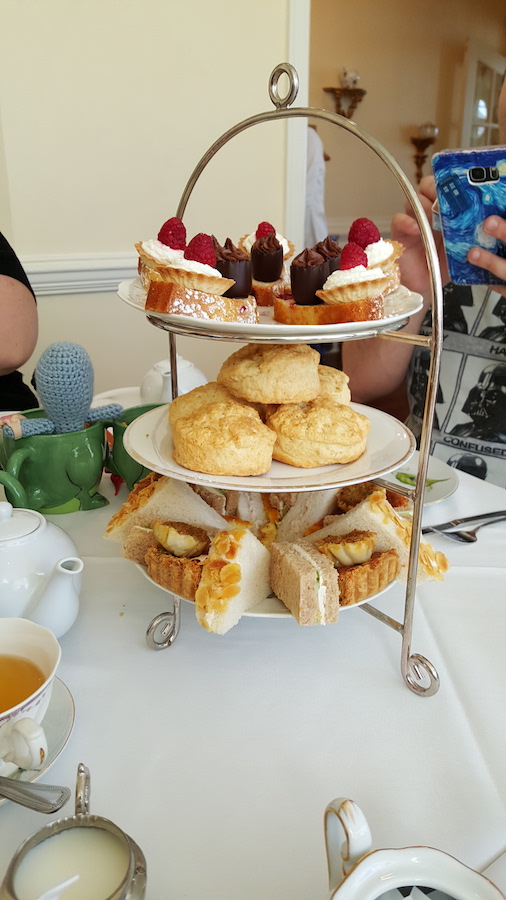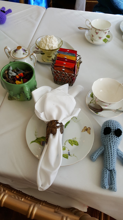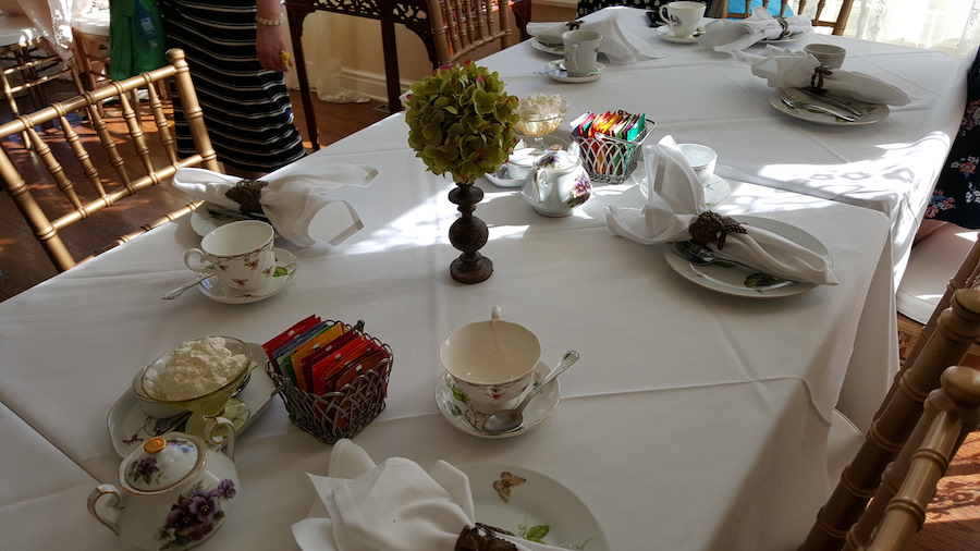 Tea was served hot or cold (or in coffee form, if that was preferred), along with delicious finger foods that included sweet scones with creme freshe and homemade raspberry jam; spinach and cheese quiche with handmade filo dough; a cucumber and cheese sandwich; a chicken salad sandwich with slivered almonds; an almond and raspberry torte with fresh creme freshe; chocolate truffles; and a lemon and berry pound cake.