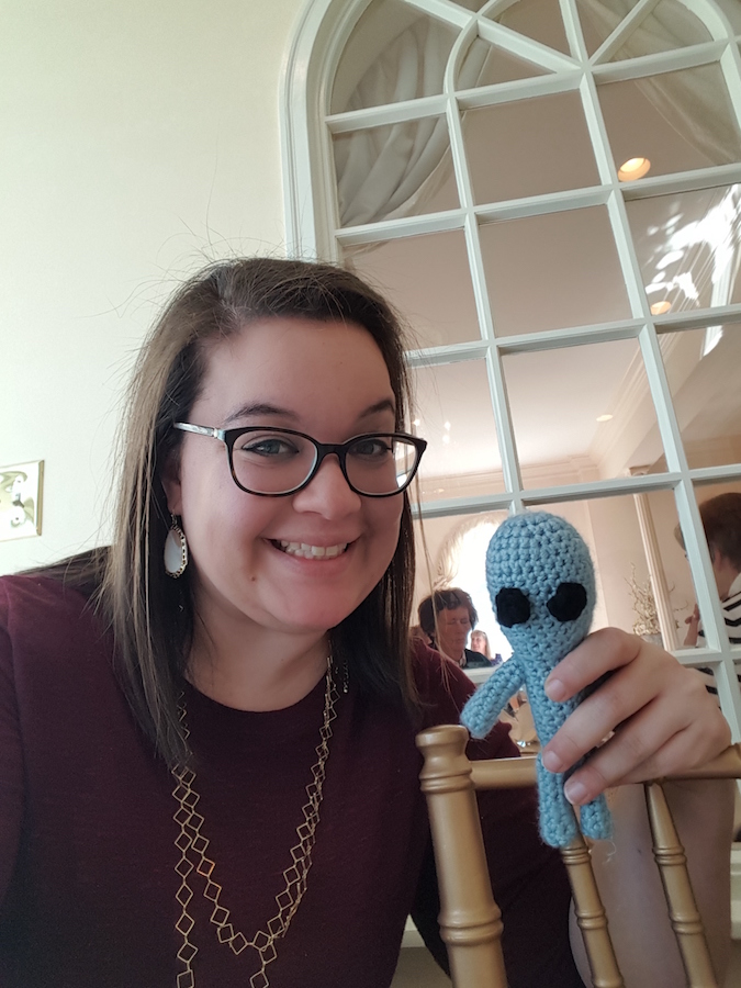 Officers had plenty of adorable dino swag for Brunchettes, like amazing dino mugs, plastic dinosaurs, dino crayons (adult coloring, anyone??), and some fun crocheted aliens from good friend and GGB fan, Connor. We also were able to have a raffle with beautiful handmade dino themed jewelry designed and made by local custom jeweler Leena Lolli. Our Brunchettes were so excited to get these incredibly unique pieces!