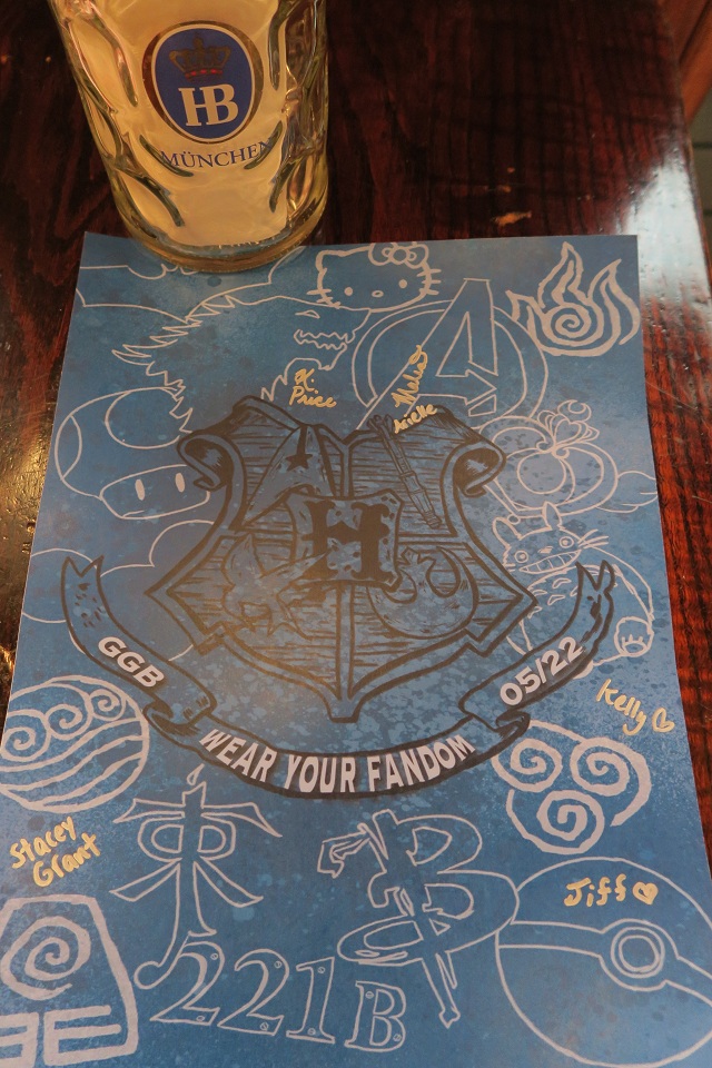On Sunday, May 22nd we donned our best shirts, cosplay, hats, and socks to meet at the Reichenbach Hall. So many fandoms represented! We had Supernatural shirts, Doctor Who skirts, pin hats and more – even the Hamilton fandom was there! Shout-out to new brunchette Jordan Dene for our officer’s Hamilton shirt.