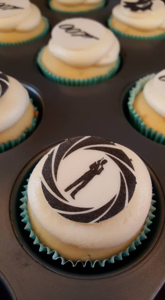 Gifties and give-aways included some nice drink shakers, designer martini glasses, an ice tray that freezes water in the shape of little hand guns, a couple of Ian Fleming paperbacks, a DVD of Casino Royale, some coasters with drink recipes on them, and a mouth spray with probably the most hilarious packaging in the world (instant British accent spray, side effects include becoming considerably more handsome and having fresh breath). Lots of the gifts given were purchased from Kards Unlimited on Walnut Street in Shadyside. It’s absolutely adorable in there so if you haven’t been yet, take a trip! We were also treated yet again to some amazing Bond themed cupcakes from Pittsburgh Sweet Relief bakery.