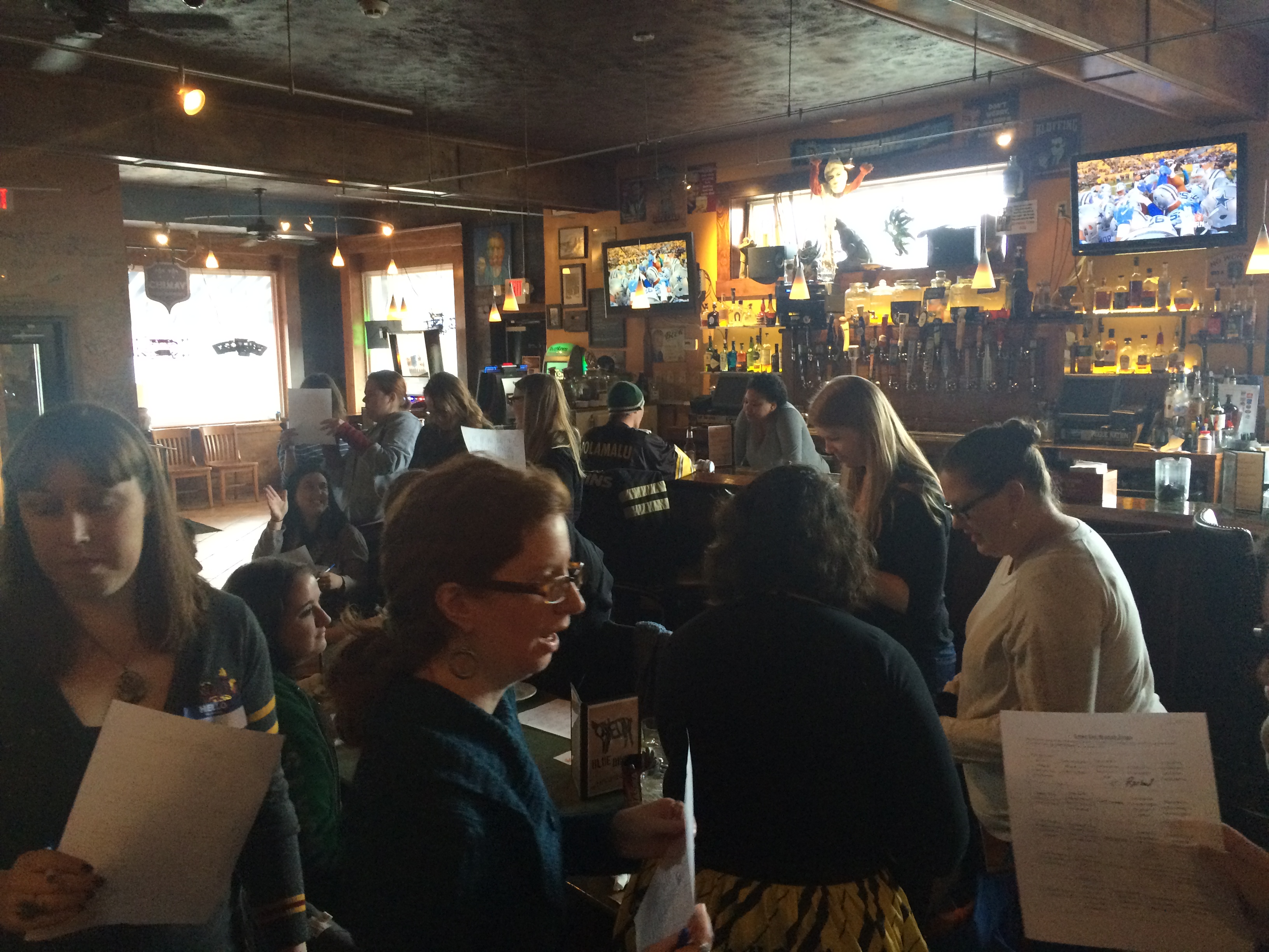 Because we’ve had so many new members sign up in the past month, we kicked off our brunch with a GGB PGH Bingo game that got our Brunchettes up out of their seats and talking to one another (fun fact: the game of Bingo was created right here in Pittsburgh). Who has lived in Pittsburgh for less than a year? Who drove more than 20 minutes to get to brunch? Who took public transportation? It was so nice to get to know our new Brunchettes. The first Brunchettes to reach Bingo were given first crack at swag.