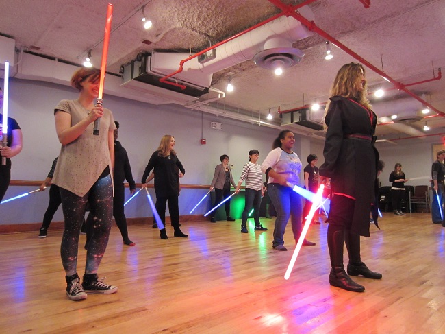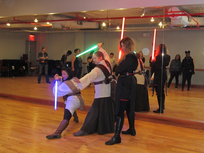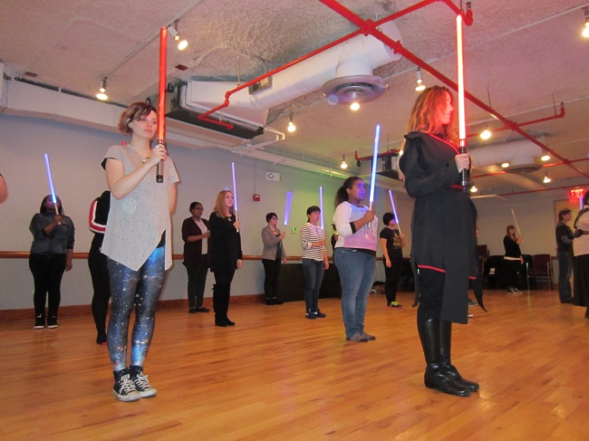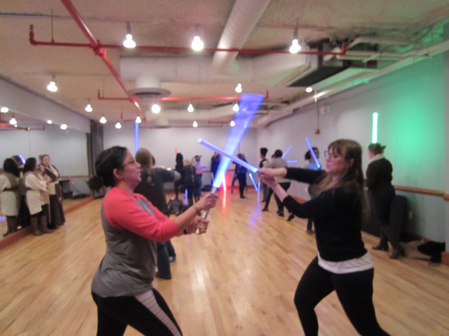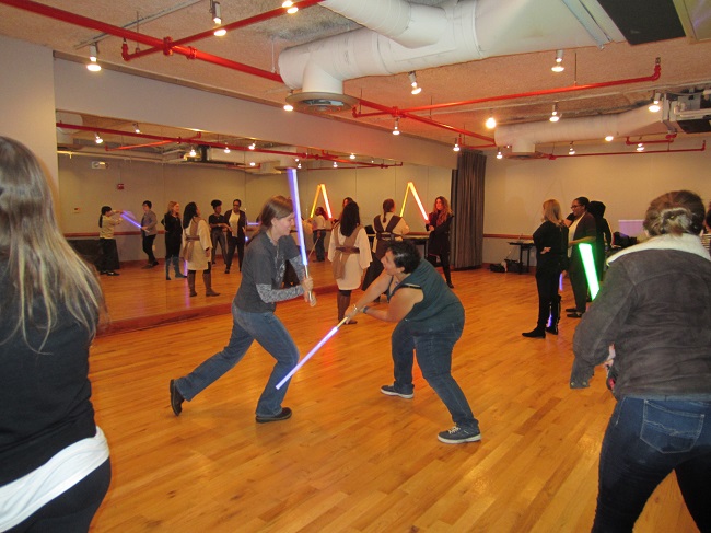Afterwards, we journeyed to a galaxy not so far away for a lightsaber lesson with the ladies of the Empire Saber Guild. Everyone learned to wield lightsabers and force push, and it was awesome. Then brunchettes paired off to duel as both sides of the force showed off their new moves.