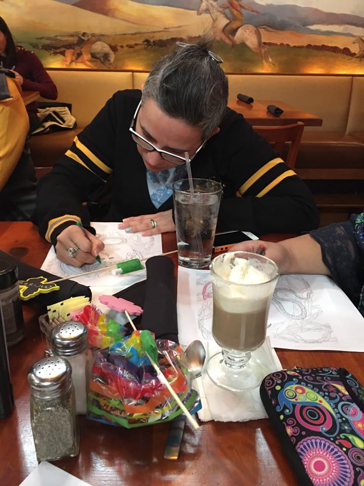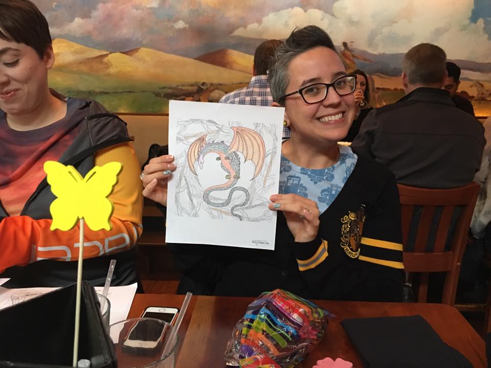 The ladies arrived to a table covered in geeky goodie bags, balloons and geeky coloring pages. We opened our goodie bags (including super hero magic towels, decorative tap and more!) and colored our pages (unicorns, wizards and dragons – oh my!) until we got the OK to check out the buffet. It was NUTS! There was breakfast, but there was also crème brûlée, baklava and cupcakes!!