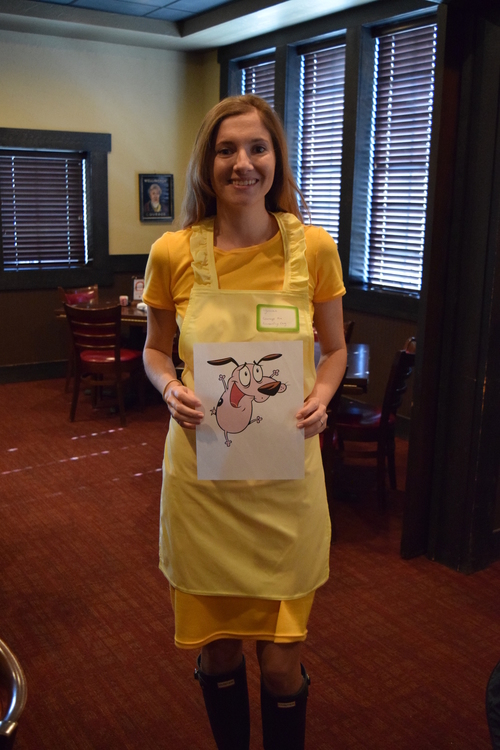 Our first activity was a mash-up of the Ellen Game and Taboo. We wrote the names of some under appreciated characters (i.e. Xena, Blue the Raptor, etc) on note cards and randomly distributed them to each brunchette. Then, each lady had to guess which character she was without the other girls saying the added “taboo” words written on each character card. The girl that guessed in the shortest amount of time won a prize.  The winner was Yvonne with Scooby-Doo!