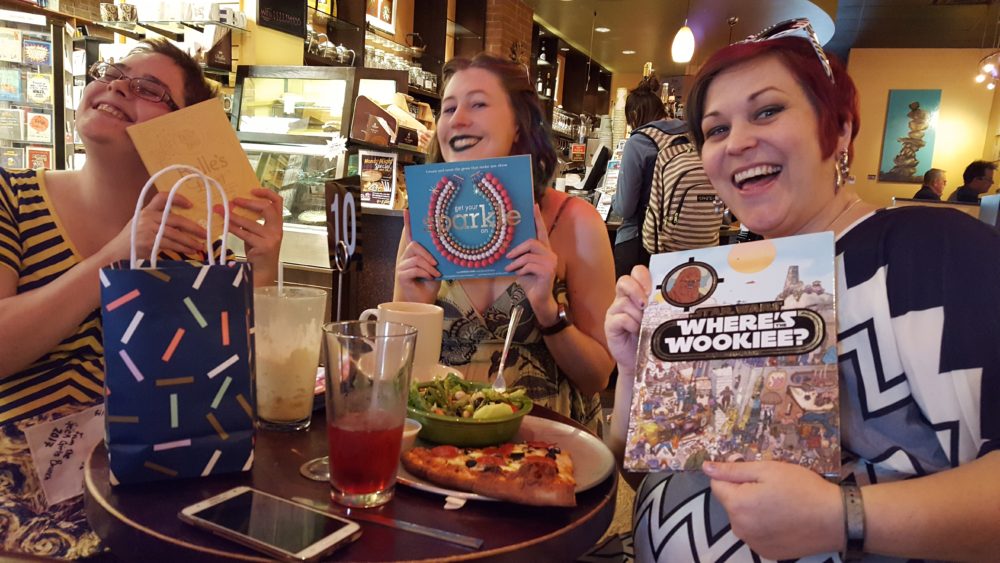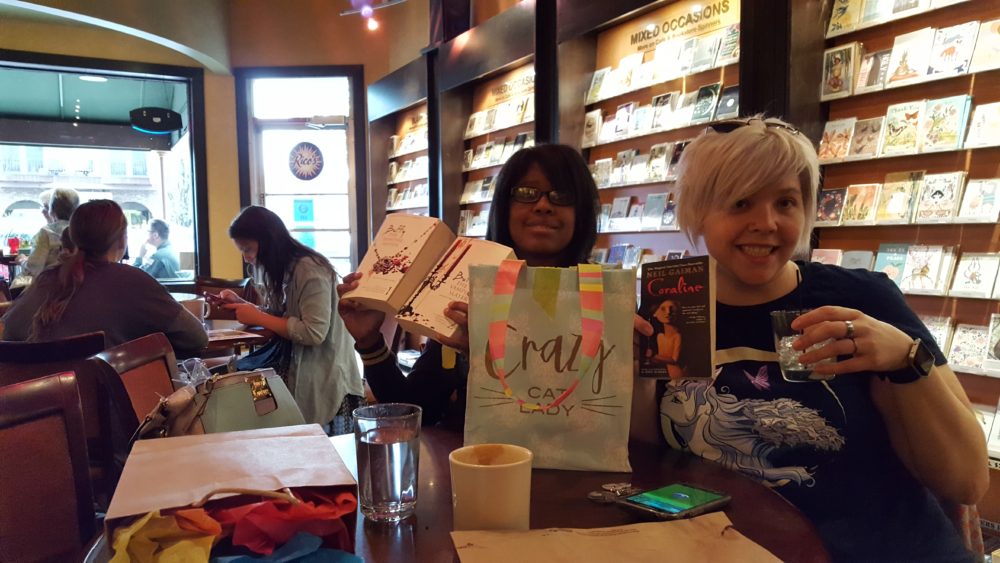 Because of the many, many cons in April and May and normal events that kept our officers busy, we opted to have a brunch between the two months at the bookstore/coffee shop called Poor Richards. It was our first ever book exchange! We lined all the books up and excitedly went to get our coffees (as well as a much needed table to sit at).