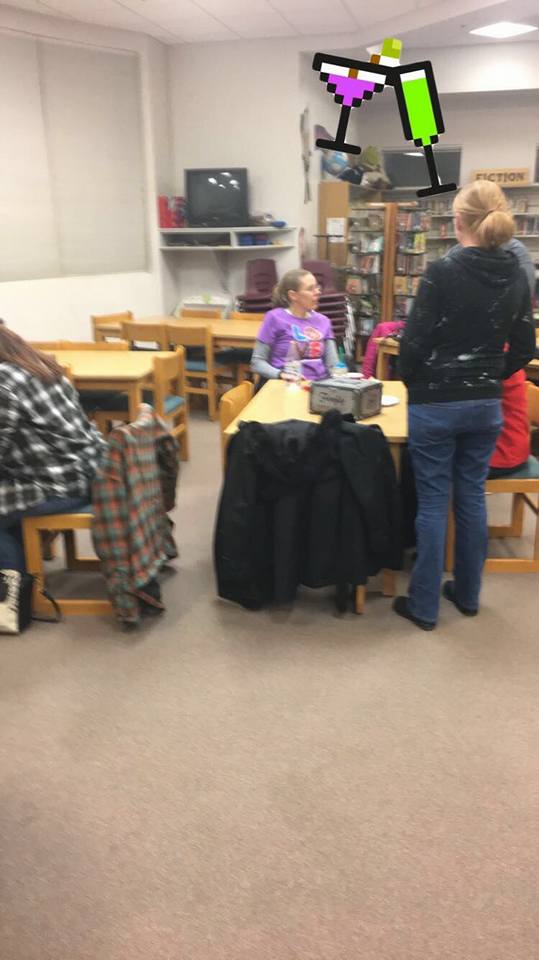 Rather than using a restaurant as our location, we utilized our GGB officer Drea’s place of business, a school library. A library was especially relevant since in the show, Buffy is constantly in the library seeking help from her Watcher, Giles. To pull on the nostalgia strings, there was a school book fair going on as well, much to our Brunchettes delight! Our lovely Brunchettes participated had a potluck with lots of goodies and an enormous amount of chocolate…no one complained!