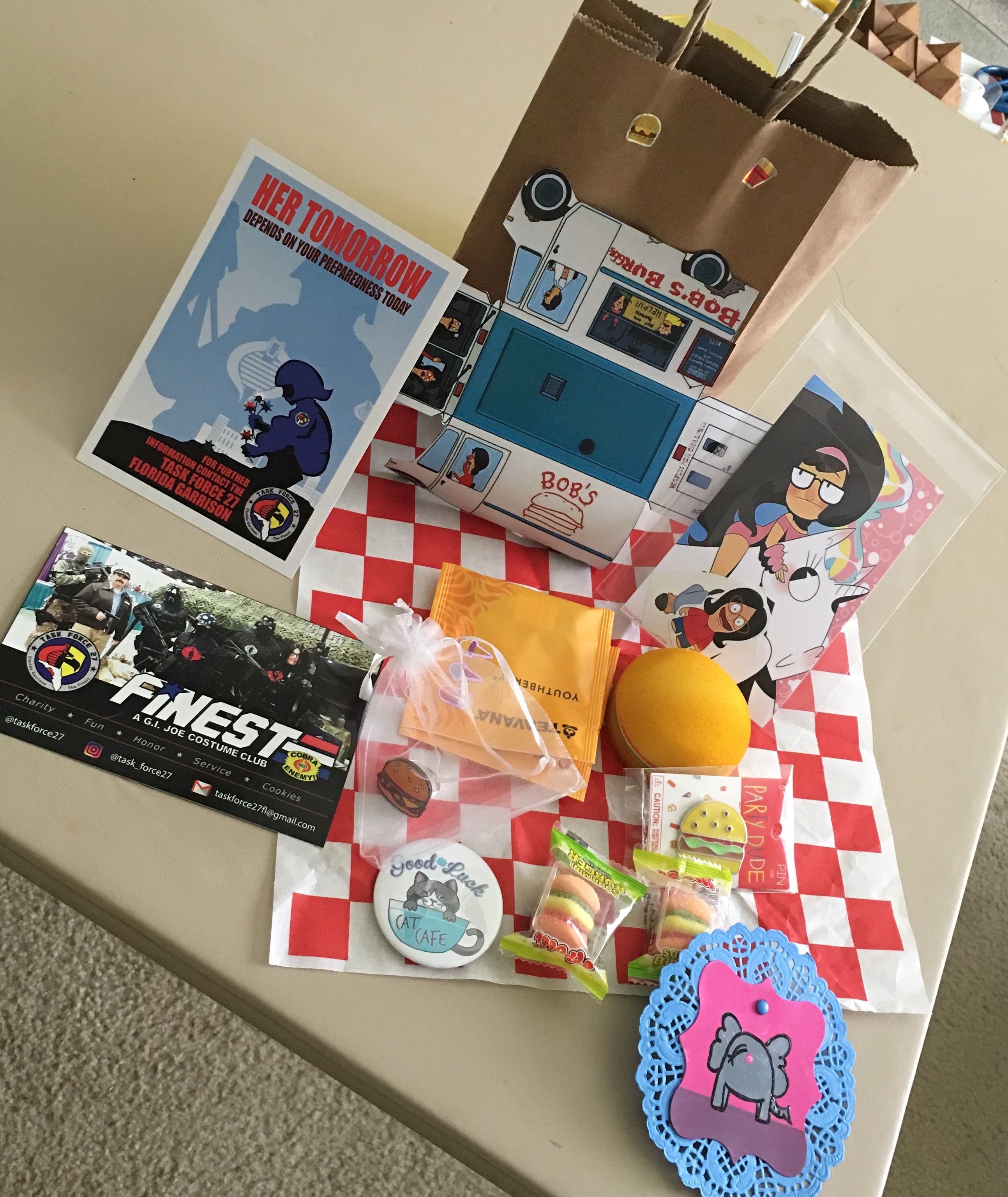 Alongside the brunch-themed swag were also a few items that – while adorable and fitting the GGB geek-inspired fashion – we came by through donating to our favorite local causes. Cobra and GI Joe themed mini-prints were made and provided by The Finest: GI Joe Costume Club’s Task Force 27 upon donations to the charity K-9s for Warriors. Buttons from the Good Luck Cat Cafe were also included for donations to the cat cafe in Wilton Manors. This donation supports two animal rescues, Good Karma Pet Rescue and Lady Luck Animal Rescue.