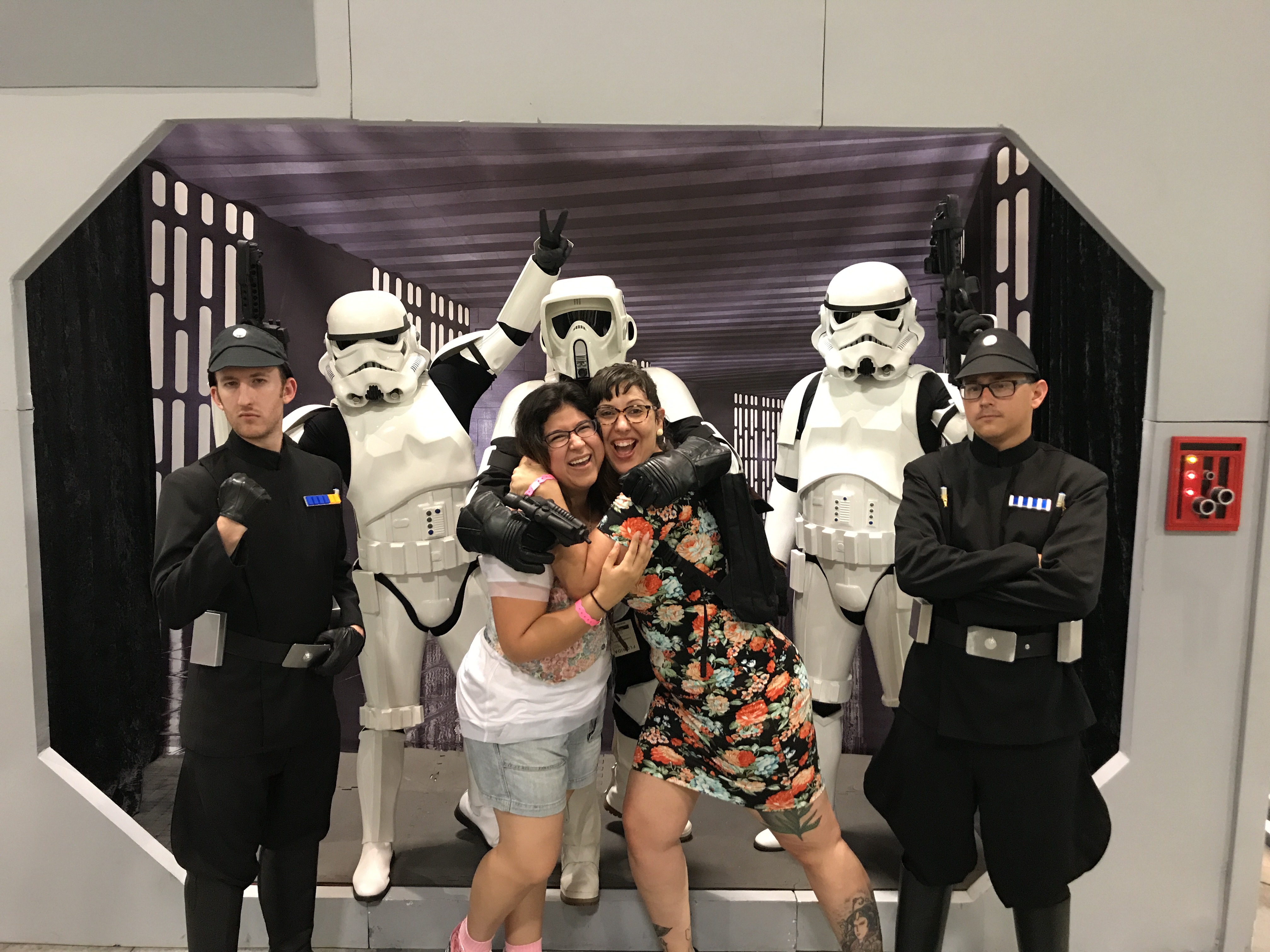 Brunches are only one of the events the GGB-FTL chapter plans for our gang. On the last weekend of July, the officers rallied some of our ladies at the Florida Supercon for meet-ups and general con-hangs. A particular shout-out to Officer Aurora who worked throughout the con at the Lauderdale Comics booths and to our rockstar bruchettes who survived every second of the madness to take pics with stars and Star Wars baddies, get comics signed, and buy absolutely everything in sight! Angela and Alexis, you guys are everything! Brunchette Becca was also there, working the con like a boss.