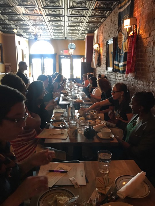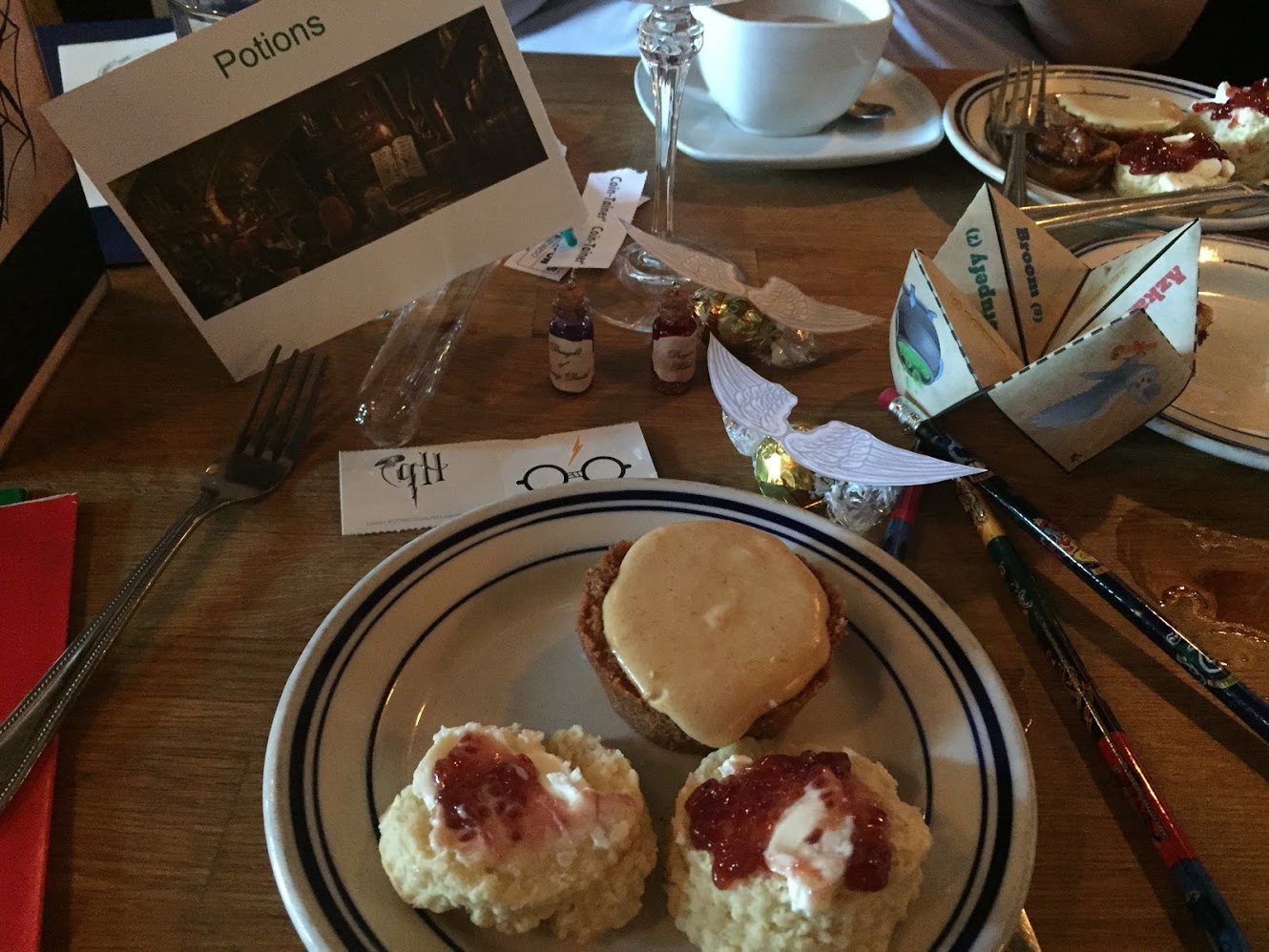 Geek Girl Brunch Philadelphia brunchettes (aka students) headed back to Hogwarts School of Witchcraft and Wizardry for their third year! This year’s theme was “Hogwarts’s Potions & Magical Studies.” Students were given house colored folders which contained their official Hogwarts class schedule and told to proceed to their first class (aka their assigned table). The four classes were: Potions, Care of Magical Creatures, Defense against the Dark Arts, and Divination. Besides the class schedule, the folders contained class assignments which helped spark table conversation like share a favorite cocktail recipe if you were assigned to the Potions class, Bingo cards to learn even more about other students like who has made their own Butterbeer or attended midnight book releases, raffle tickets, FanMail pens, and 4 random students (1 from each house) were given Felix Felicis cards to trade in for a 2018 Harry Potter character calendar (How very luck of them!).