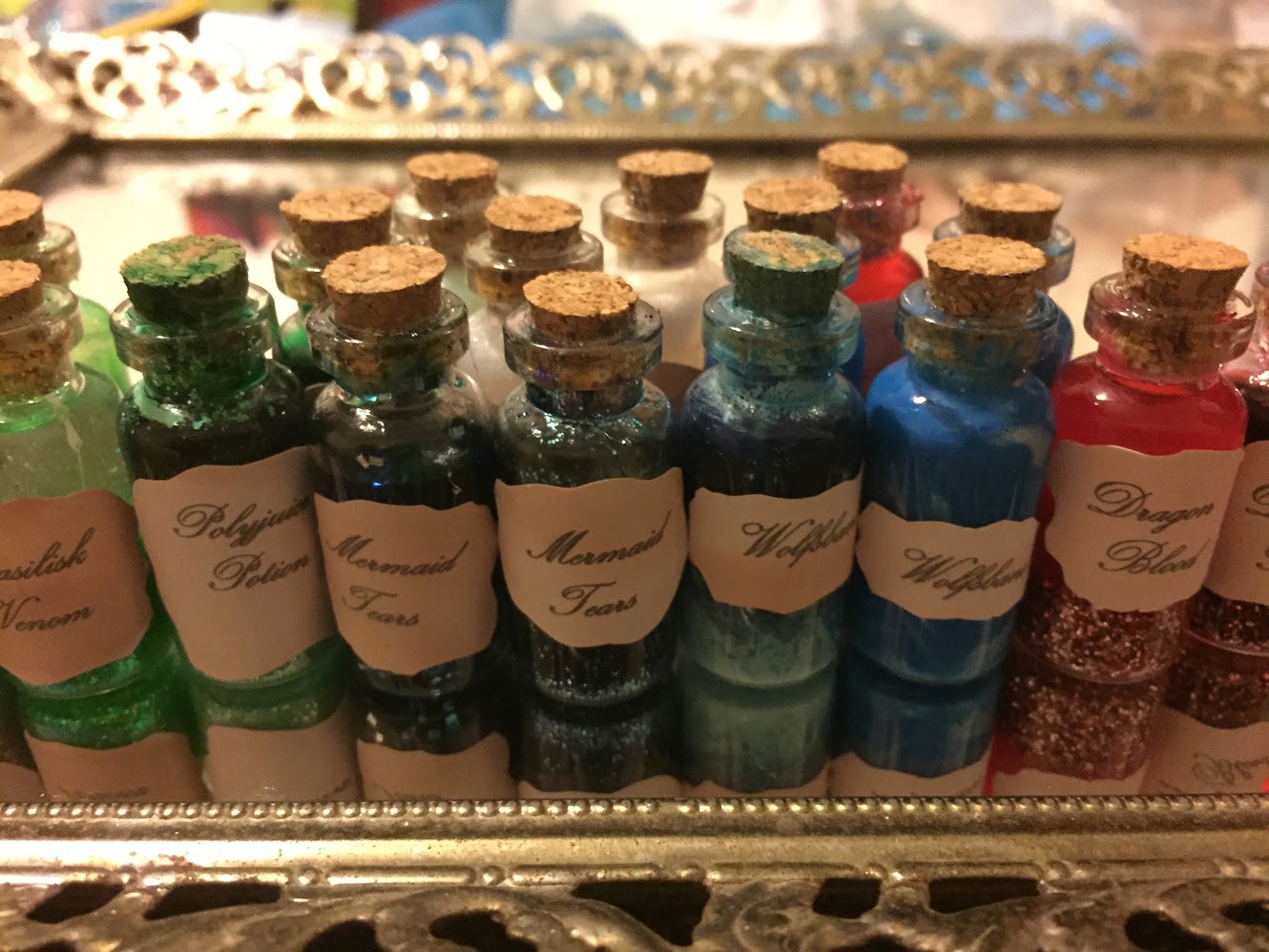 On each table, potion bottles made by the officers containing Polyjuice Potion, Mermaid Tears, Dragon Blood, Wolfsbane, and a variety of other potions were available for everyone to take with them. Other goodies included edible Golden Snitches(Lindt white chocolate truffles with snitch wings attached), Hogwarts house pencils, HP tattoos, and origami (aka cootie catcher) Sorting Hats.