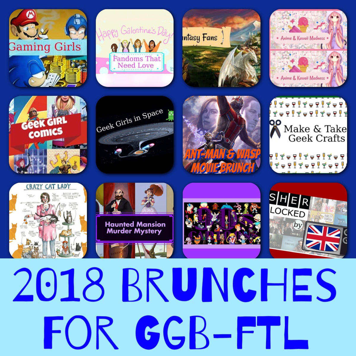 Our chapter kicked off the month of November by daily reveals of our 2018 brunch themes and planned meet-ups. The officers worked hard to come up with interesting, exciting, and broad categories of fandoms so that all our brunchettes could find something to celebrate each and every month. For those of us new to some of these themes, we’re looking forward to how our brunchettes will employ the themes in their outfits or how we (the officers) will use the themes to guide our swag, prizes, and location scouting.