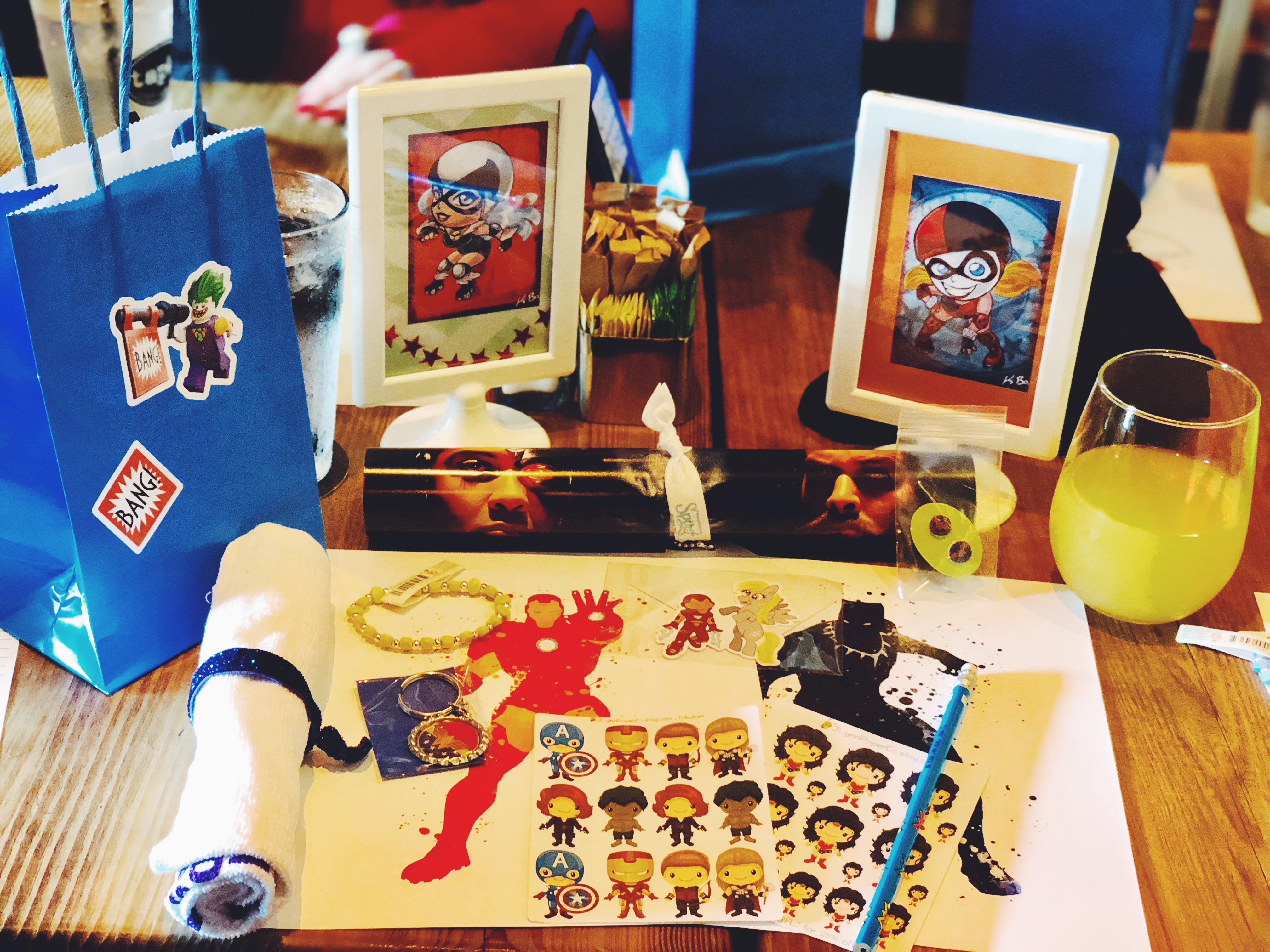 Repping DC and Marvel both, the goody bags this month included items from Beckadoodles (Etsy) including the cutest My Little Ponies/ Superheroes mashup ever and the most adorable interpretations of DC and Marvel rivalries – Batman vs. Superman, and Iron Man vs. Captain America. Thanks to J. Lynn Paper Co. (Etsy) for her as-usually-perfect Guardians of the Galaxy and Wonder Woman magnetic bookmarks and Avengers sticker sheets. Watercolor superhero prints from Color My Kids Room (Etsy) featured a variety of superheores from Batgirl and Robin to Black Panther and Storm.