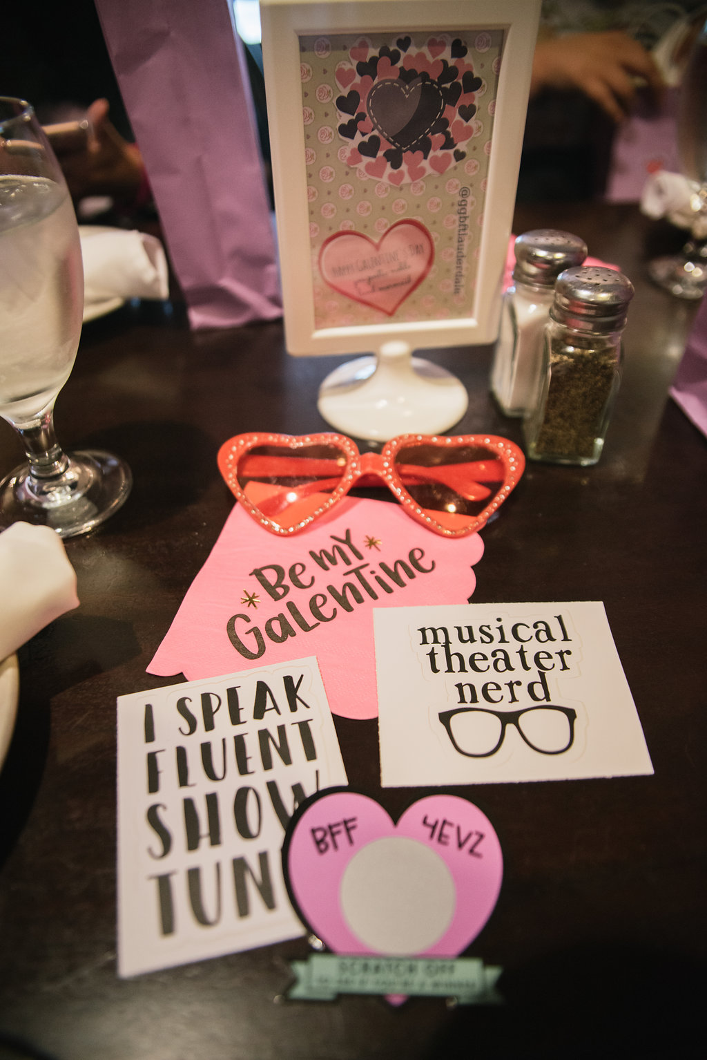 Our goody bags included cutesy Valentines/ Galentines themed cards, stickers, lollipops, pencils, and more; but they also included unique GGB-FTL swag created by and for our brunchettes. Fangirl 4 Lyfe button magnets were created by Officer Cristy repping our random fandoms: Squirrel Girl, Fringe, tabletop gaming, Harry Potter, Super Mario, and Star Trek. Also a unique addition: our own Friends Work Waffles Galentines Day cards so we can let our own beautiful tropical fish and bodacious bombshell land mermaids know how much they mean to us. Musicals are a huge fandom that we don’t often get to explore with GGB so we found some stickers on Redbubble to rep our musical theater nerddom.