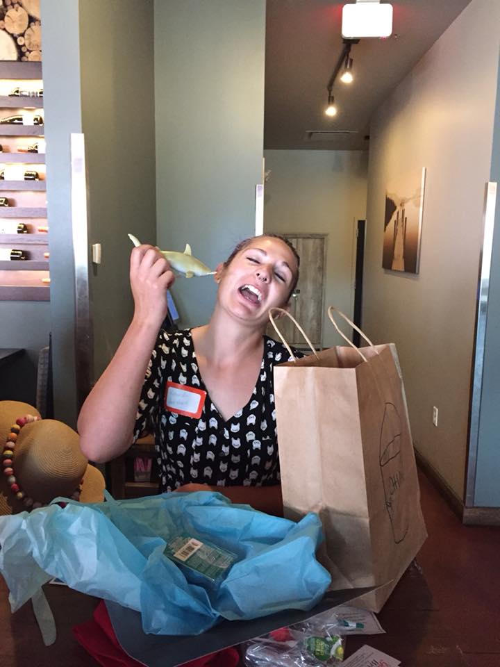 For our first activity, each lady was given a sheet with fill-in-the-blank shark trivia, which also included some bonus questions from JAWS and Sharknado. The lady with the most correct answers won a prize of her choosing, and Robyn chose the Shark Treats bag!