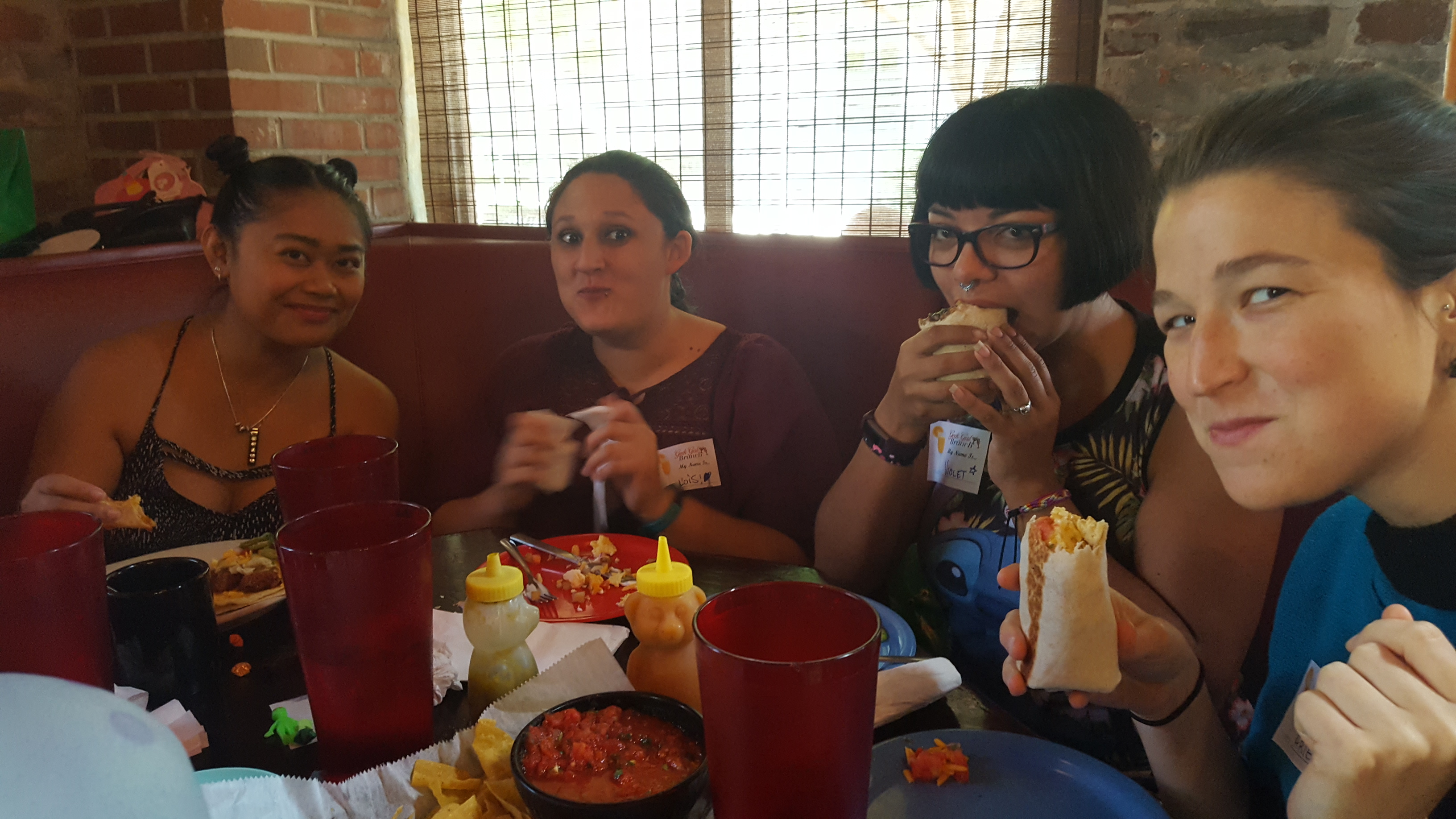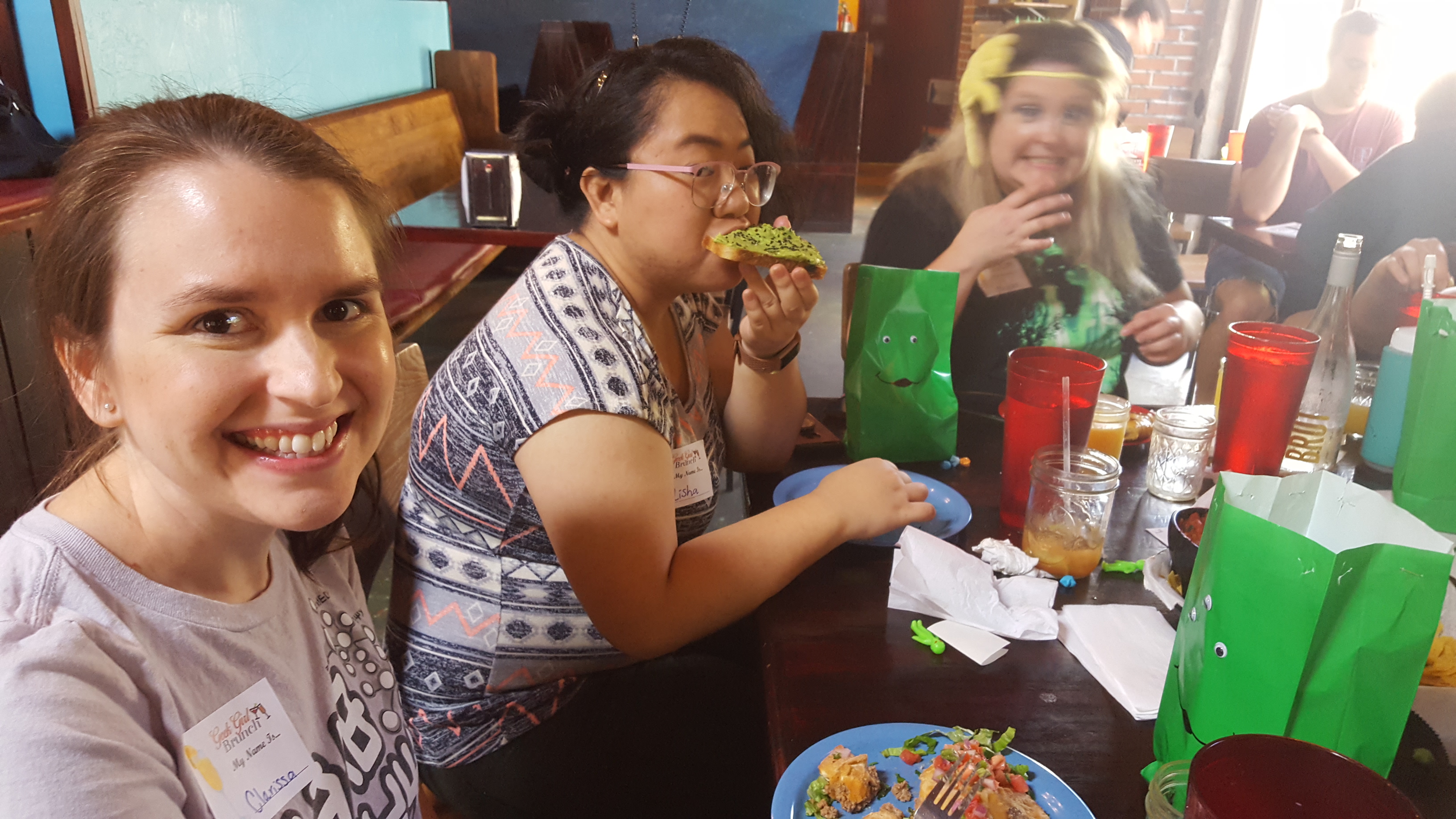 There were several new faces at the alien brunch, with five new brunchettes joining us in September. Brunchettes got to know each other over breakfast burritos and empanadas. A few Gainesville members talked about LARPing experiences, while others connected via Pokémon Go. Quite a few discovered they shared a love of crafting.