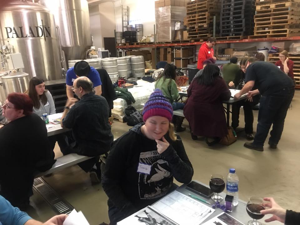 There was a turn out of 14 players, and they enjoyed a wild night of combating all that D&D has to offer! They were given a brief overview of what the game is and how it runs, then were able to pick from a selection of pregenerated characters, before enjoying several hours of game play. Much fun was had by all, along with some very good beer care of Paladin. We hope to make this a regular ‘non-official’ event so our Brunchettes can continue to enjoy the amazing world of D&D!