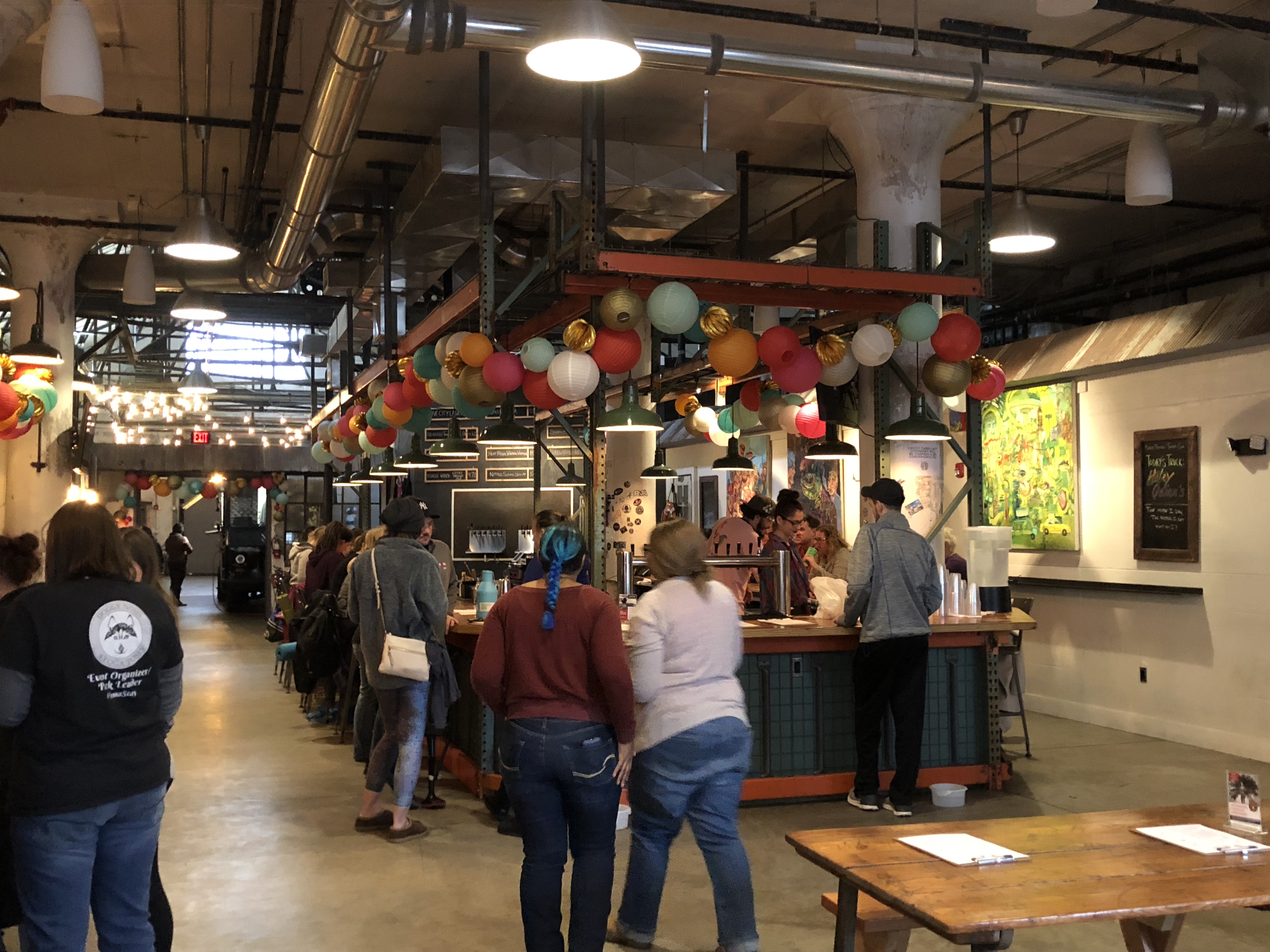 Love City Brewing is not the typical brunch venue, but Philadelphia Brunchettes have really taken a shine to the place since our Board Game Brunch in August. The large open space of the warehouse turned brewery is a perfect meeting place for a large group. Love City reserves picnic tables inside for us to spread out and enjoy our food and drink. Beer and cocktails were available at the expansive bar and enjoyed by a number of Brunchettes. Some tried beer flights while others had seasonal cocktails or brewery specials.